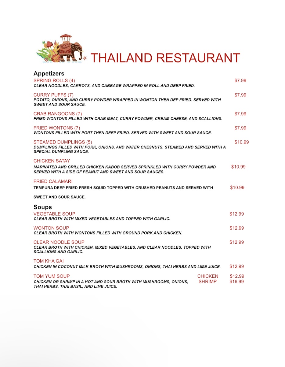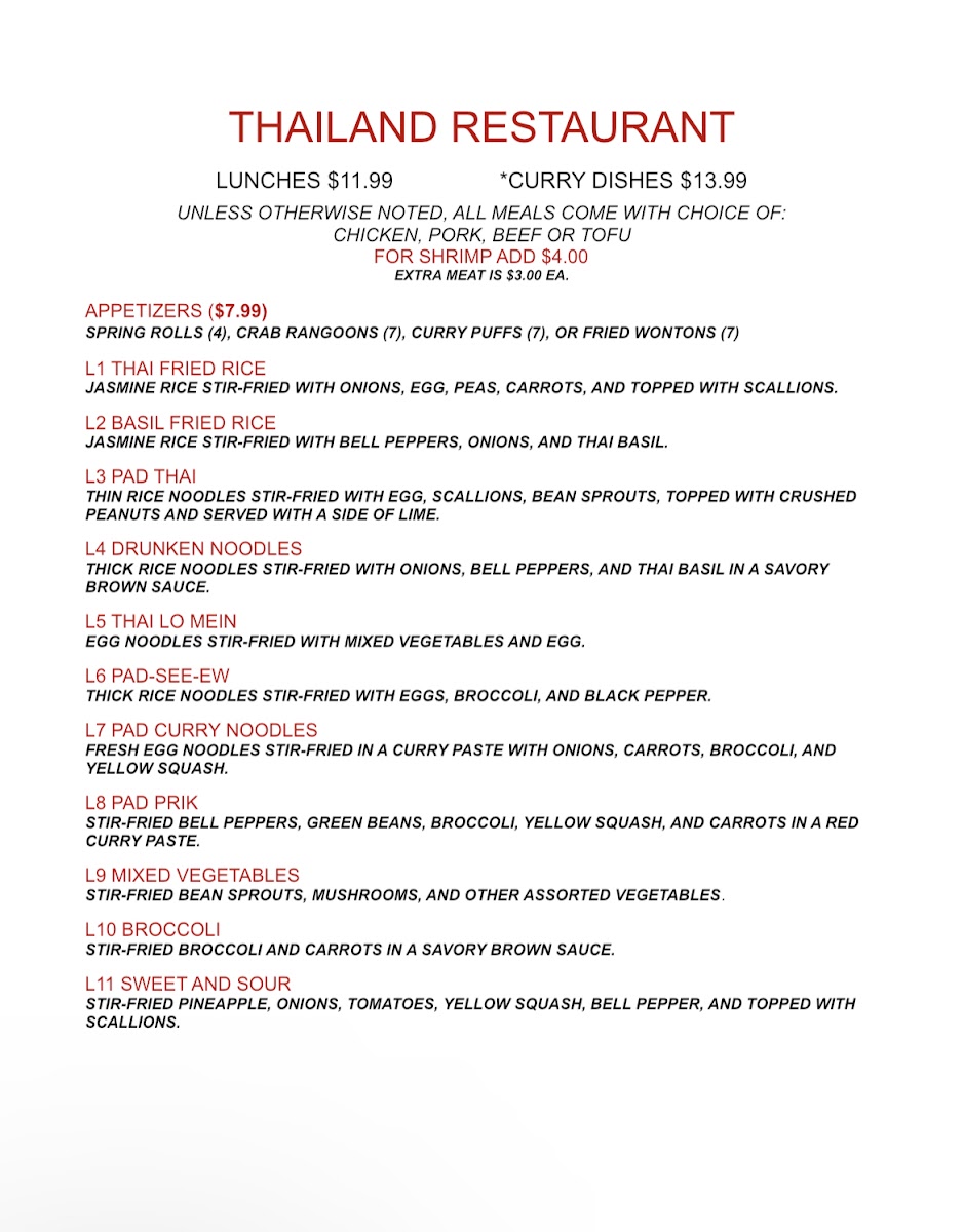 With generous portions and a commitment to quality, Thailand Restaurant invites you to savor every bite.